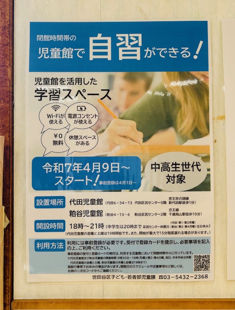 私ども区議団が求めてきた、中高生のために児童館を活用した学習スペース📚が、本年4月より児童館閉館後にオープンしています。