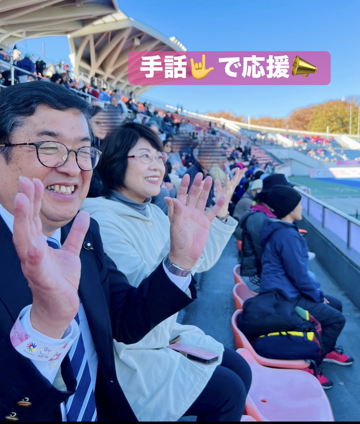11/22、駒沢オリンピック陸上競技場にて開催されているデフリンピック陸上競技の応援に駆けつけさせて頂きました!