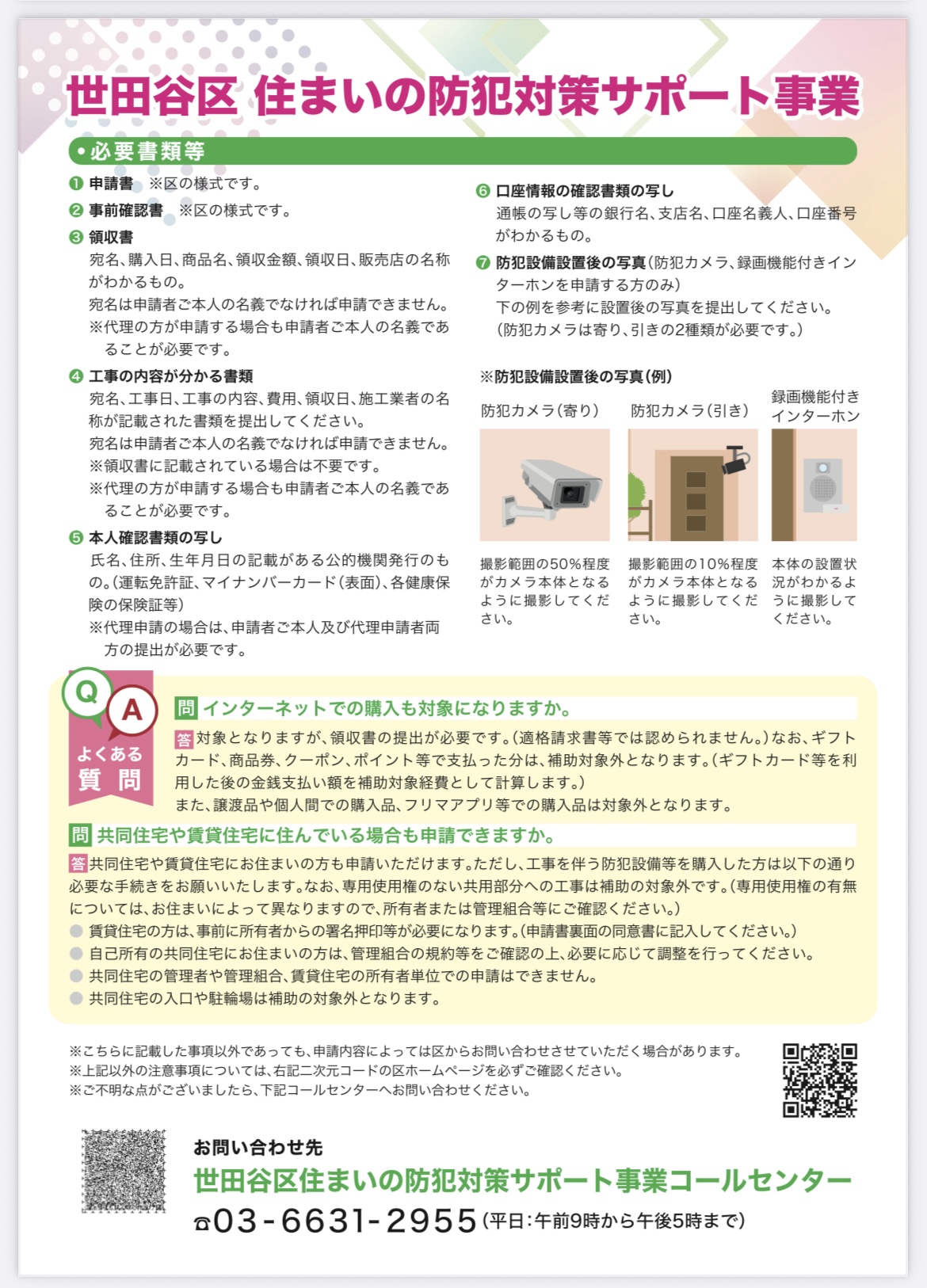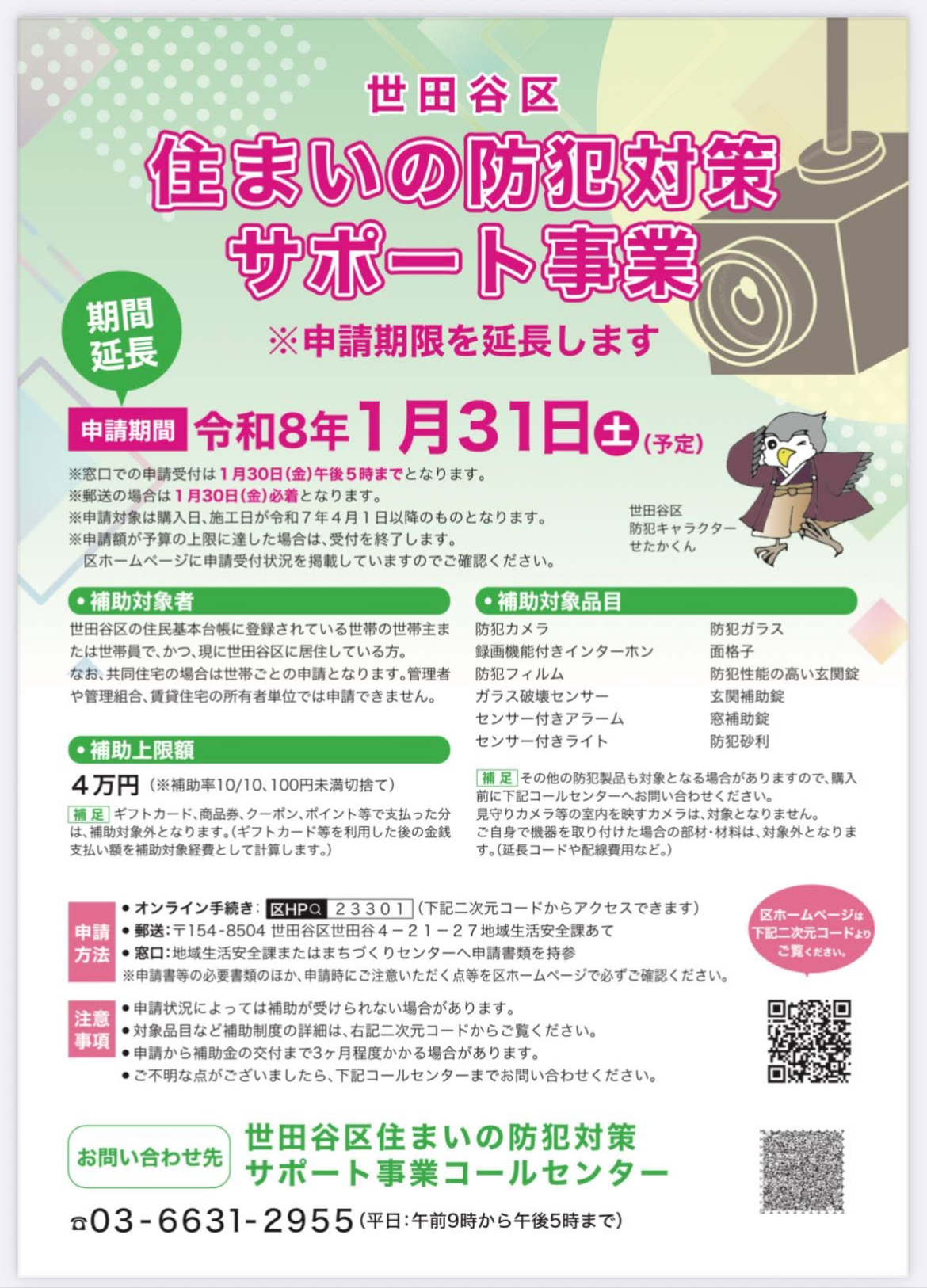 現在、世田谷区では、補助上限40,000円の #住まいの防犯対策サポート事業 を実施中です。